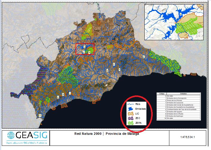 Ahora estamos haciendo un mapa de una zona en concreto donde hay Lugares de Interés Comunitario (LICs) y Zonas de Especial Protección de Aves (ZEPAs) pero no hay Zonas de Especial Conservación (ZEC) por lo que no tiene mucho sentido que en nuestra leyenda aparezca esta última categoría así que vamos a quitarla.