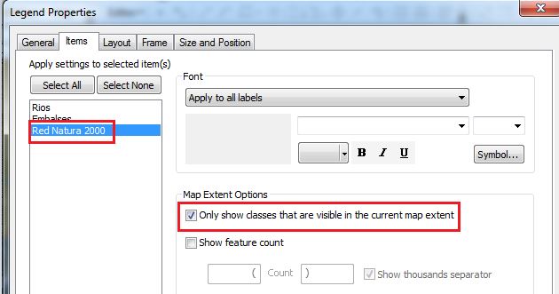 Seleccionamos la capa de Red Natura 2000 y activamos la casilla “Only show clases that are visible in the current map extent».