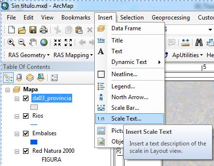 La escala dinámica permite incluir una escala que se modifica automáticamente a medida que hacemos más o menos zoom. La opción la tenemos en Insert < Scale Text.