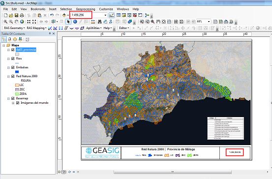 La escala se añadirá a nuestro mapa y la podremos colocar donde queramos. Si nos fijamos, la escala es exactamente idéntica a la escala de la vista así que al hacer zoom a alguna zona la escala cambiará automáticamente.