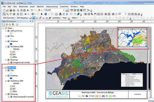 otro truco de ArcGIS para la presentación de mapas es la posibilidad de incluir mapas de ubicación. Con esta opción podemos incluir otra vista donde mostrar una zona concreta del mapa.