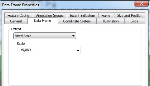 Por último vamos a fijar la escala para que no se pueda cambiar el zoom de la vista. Para hacerlo nos vamos al Data Frame (botón derecho) < Properties < Data Frame < Extent y seleccionamos la opción de Fixed Scale.