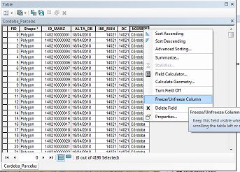 El tercero de los trucos de ArcGIS es muy interesante ya que nos va a permitir congelar una columna. Así podremos seleccionar uno de los campos de la tabla para ponerlo al principio y que no se mueva.