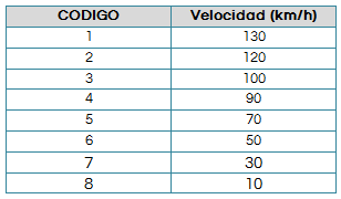 Disponemos de una capa vectorial que contiene las carreteras de la zona de estudio. En esta capa, el campo “CODIGO” nos da información de la velocidad a la que se puede circular, que se resume en la tabla siguiente.