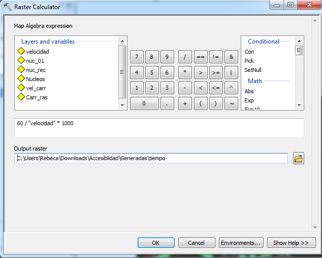 Para conocer el tiempo que se tarda en llegar a cada celda desde cada una de las estaciones, debemos obtener el raster de tiempos, que es el que posteriormente será nuestro raster de costes.
