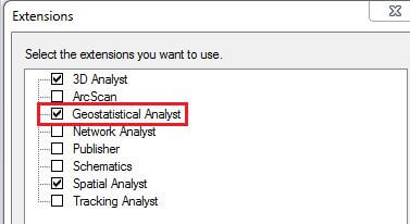 Para poder realizar un análisis de tendencias espaciales con ArcGIS, tendremos que usar la extensión de Análisis Geoestadístico así que lo primero de todo será activar la extensión pulsando en Customize < Extensions y nos aseguramos de que está activa.