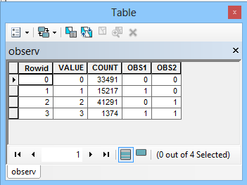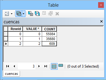 En este caso se genera un nuevo raster con cuatro valores diferentes: 0, 1, 2 y 3; para saber qué significan estos valores consultamos la tabla de atributos: