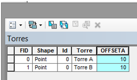 Como las torres tienen una altura de 10 metros, debemos introducir ese valor en el campo OFFSETA o bien con la calculadora de campos $selección campo ‘OFFSETA’ (botón derecho) < Field Calculator o bien mediante la edición de la capa. Así estaremos indicamos que la Torre A tiene una altura de 10 metros y la Torre B también.