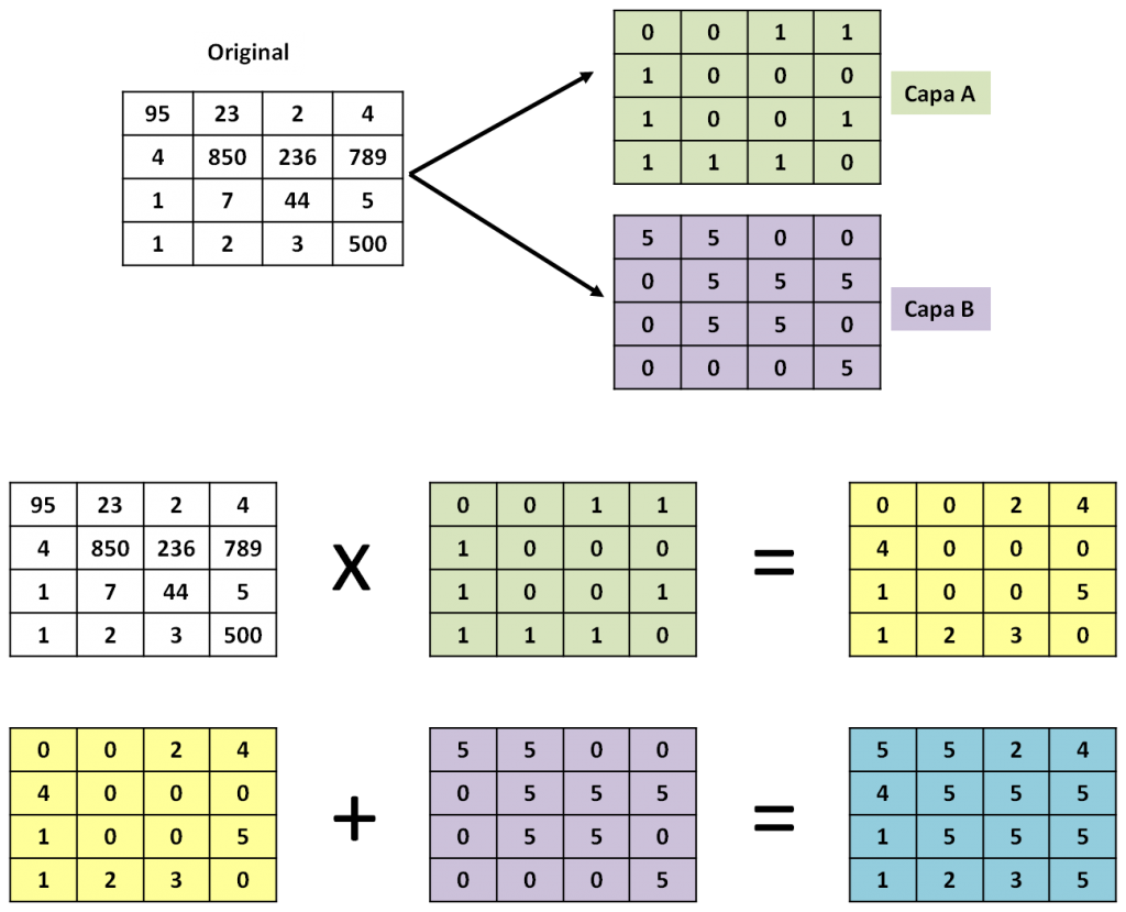 Para generar la “Capa B” hacemos de exactamente lo mismo que anteriormente, establecer dos clasificaciones para el Fac, 5 y el valor máximo. Lo que será diferente es que en esta ocasión daremos un nuevo valor de «0» a aquellos que estaban por debajo de 5 y un valor de 5 a todos aquellos que estaban por encima.