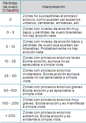 A la vista de los resultados podemos concluir que se trata de una región en la que los procesos erosivos tienen una gran importancia. En general, toda la zona presenta una tasa anual de pérdida de suelo considerable, especialmente marcada en la zona norte, coincidiendo con las zonas donde la erosividad de la lluvia es mayor, las pendientes son más escarpadas y existe una menor cobertura vegetal.