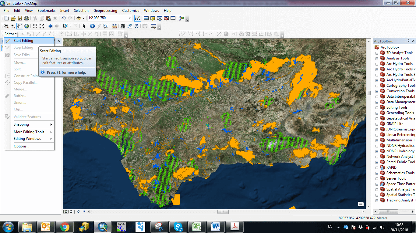 Una vez que la hemos seleccionado, la barra de herramientas se agregará al proyecto pero aparecerá “apagada” así que debemos activar la edición Editor < Start Editing.