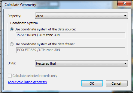 Seleccionamos el campo (Area) y las unidades (en este caso hectáreas)