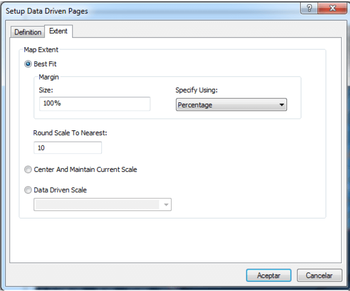Una vez configurada la presentación, vamos a establecer los parámetros en Data Driven Pages pulsando en su icono de configuración.