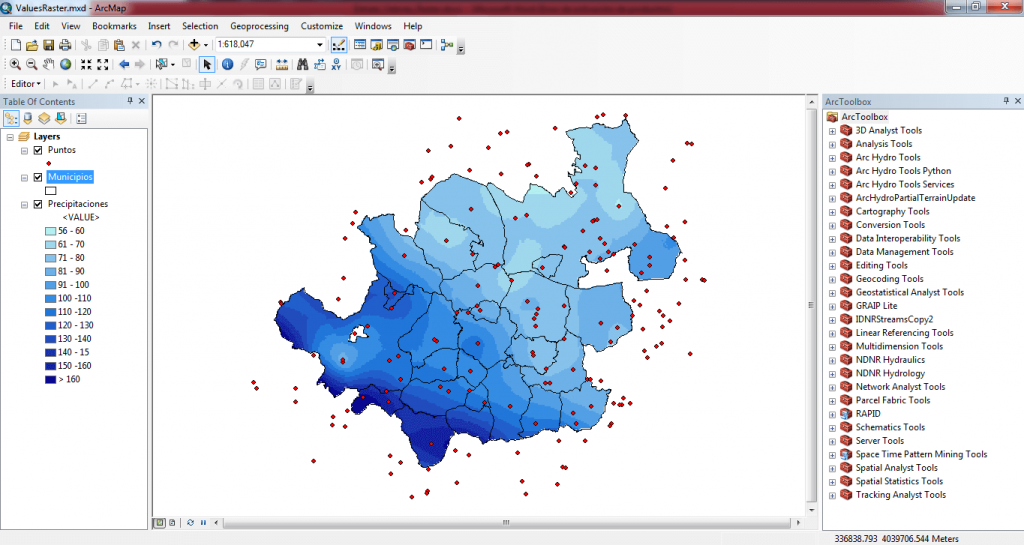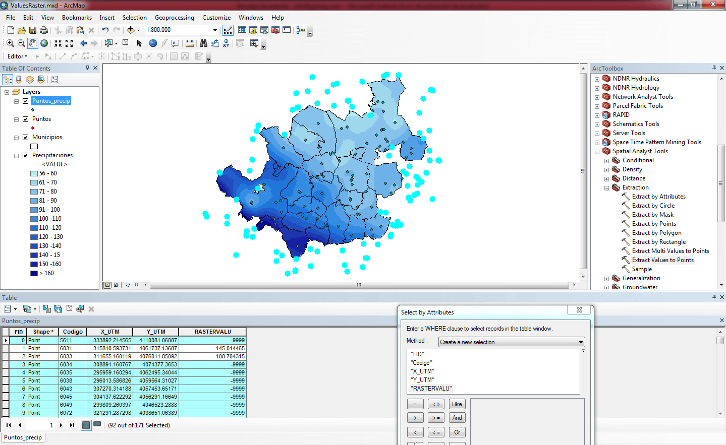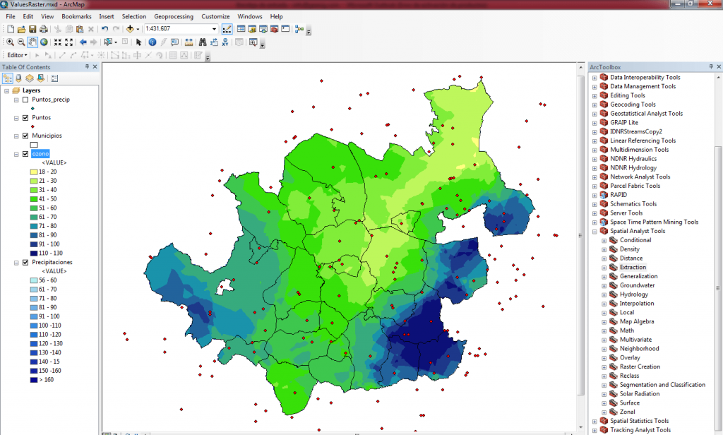 Ya sabemos realizar algunos análisis raster como la unión de raster, el uso de la calculadora raster o las herramientas de distancia euclidiana y reclasificación. Ahora vamos a aprender a extraer valores de un raster con ArcGIS a una capa de puntos.