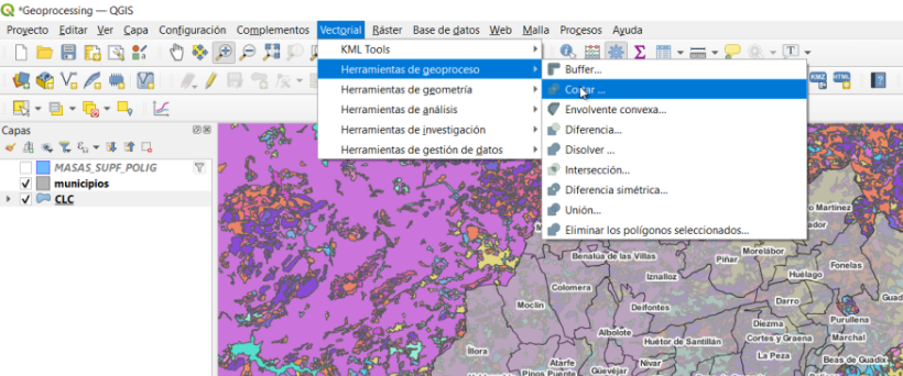 Geoprocesamiento con QGIS: CORTAR