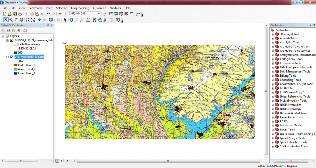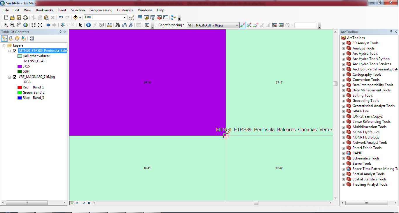 Una vez que disponemos de la barra de herramientas, vamos a cargar en el proyecto de ArcMap las cuadrículas cartográficas MTN50: