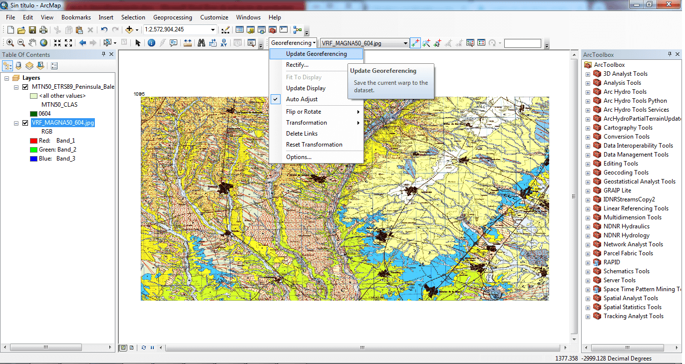 Por último, para que los cambios se actualicen, y guardar la imagen georreferenciada pulsamos en Georeferencing < Update Georeferencing.