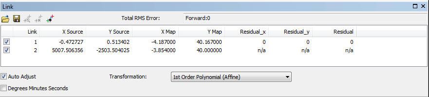 Además, tenemos la posibilidad de consultar la correspondencia entre las coordenadas originales y las coordenadas georreferenciadas pulsando en el icono de View Link Table