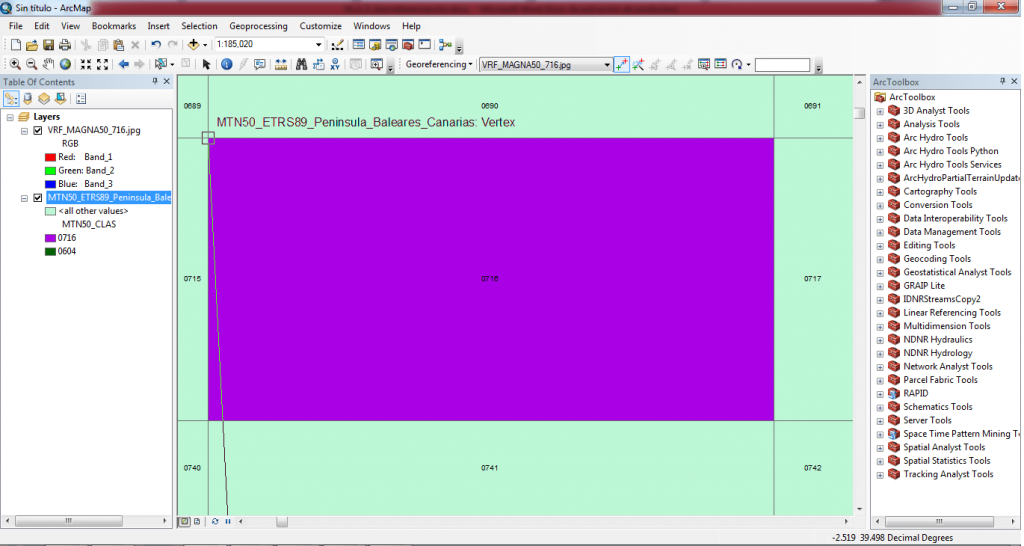 Ahora nos desplazamos hasta la ubicación de la cuadricula de la hoja 716 y pulsamos sobre su esquina superior izquierda: