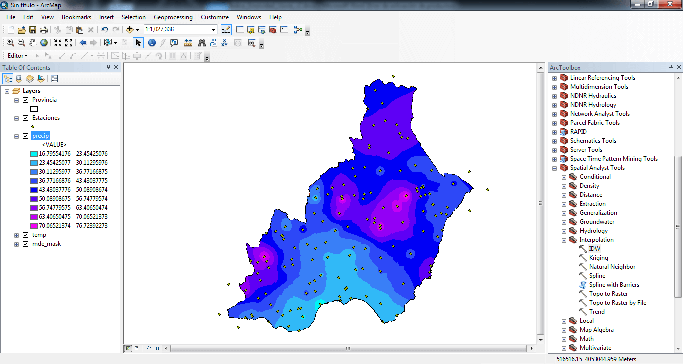 Mapas de isolíneas con ArcGIS: Isoyetas