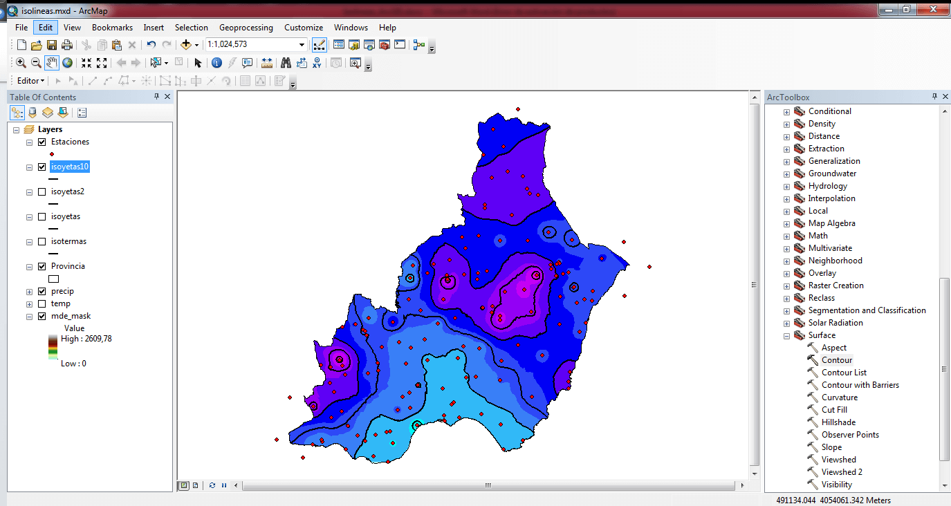 Mapas de isolíneas con ArcGIS: isoyetas, isotermas y curvas de nivel
