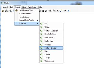 Ya tenemos el modelo creado así que comenzamos a configurarlo. En primer lugar añadiremos un Iterador de Clases de entidad Insert < Iterators < Feature Classess.