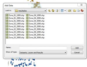 Si ahora vamos a la carpeta donde le habíamos indicado que guardase las capas veremos que ha generado 3 capas (buffer de 1000, 2000 y 5000 metros) para cada una de las Zonas.