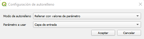 • Modo de autorrelleno: seleccionamos la opción «Rellenar con valores de parámetro«