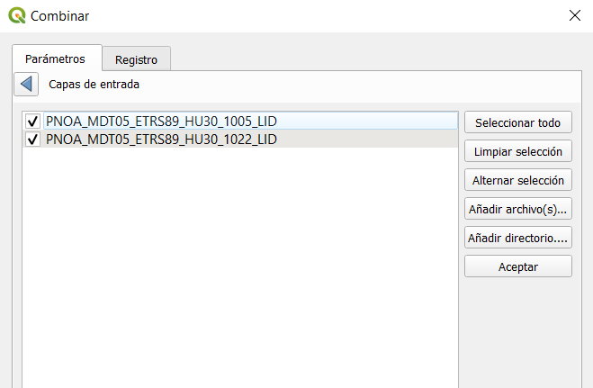 En primer lugar seleccionamos las capas de entrada, que en este caso serán los dos archivos de los MDT.