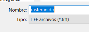 Por último, establecemos la ruta de guardado, el nombre del raster que se va a generar y el tipo (TIFF).